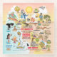 Bright and colourful scene offers a spectacular view of Southern California - wacky characters frolic on the beach and desert of SoCal showcasing Los Angeles, Orange County, San Diego, Santa Barbara, Riverside, Palm Springs, El Centro, Salton Sea, Anza Borrego and Joshua Tree parks as well as the border cities of Tijuana, Tecate and Mexicali. This charming scene has it all – a surfer hangs ten while a killer whale leaps out of the water, zoo animals smile for the camera, wine lovers make a toast as a hiker is noticed by a UFO and much more…