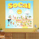 Bright and colourful scene offers a spectacular view of Southern California - wacky characters frolic on the beach and desert of SoCal showcasing Los Angeles, San Diego, Santa Barbara, Riverside, Palm Springs, Anaheim, Anza Borrego and Joshua Tree parks as well as the border cities of Tijuana, Tecate and Mexicali. This charming scene has it all – a surfer hangs ten while a mermaid lounges on a rock, a killer whale leaps out of the water, zoo animals greet the tourists, a muscular beach couple both flex to impress as a T-Rex roars a challenge and a tank moves into position and much more…