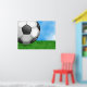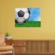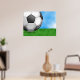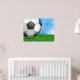 Close up illustration of a football resting upon a field of grass. The ball is designed low to the ground. There is also space in the sky to add a text message if you wish to. Image available on various gifts and products.