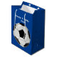 Sports themed medium size gift bag done in royal blue with a big black and white soccer ball, on the front and back. White custom text is ready to personalise to read what you want. Matching tissue paper is available.