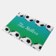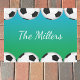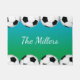 Soccer ball borders on a blue and green background with your custom family name, monogram, or other text in the middle make a fun doormat for a soccer loving family.