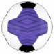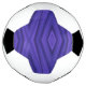 "Soccer ball featuring a geometric pattern with purple shapes against a white background. The pattern is showcased flat beneath the ball."