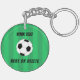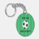Customise this modern and simple soccer themed design keychain featuring a white and black soccer ball graphic on a green field.