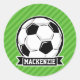 Soccer Ball; Green Stripes Classic Round Sticker
