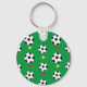 Soccer Ball keychain designed by Nisha Prabhu. This soccer ball themed keychain is just what you need to express your love for soccer. The front and back features a large soccer balls with red and yellow flags on green background. Sports gifts for soccer coach, soccer team, soccer fans, soccer player, soccer lover.