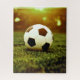 This is a great gift for the soccer lover in your life. This black and white soccer ball is sitting on the perfect beautiful day ready to be kicked into the goal. Making a great team gift or coach gift.