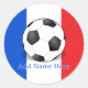 A soccer ball on red, white and blue background. Custom stickers. Edit name to customise.