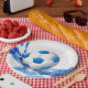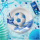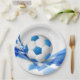 Party paper plate shown with a sports soccer ball print.
