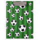 This fun sports equipment pattern has soccer balls on a green field striped background. The athletic gear design makes a fun birthday, Father's Day, Christmas, or other holiday gift for a proud soccer dad or team coach.