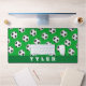 Soccer Ball Pattern, White Name on Green Desk Mat