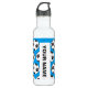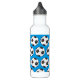 Water bottle with repeating soccer ball pattern overlay-ed on blue. With a white stripe down the middle and a personalised name in bold black lettering. Edit the field called "your name" to put in the name of your team, kid. Or leave it blank and sharpie it on later yourself.