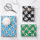 Soccer fans will love this custom set of gift wrapping paper sheets decorated with a classic soccer ball pattern! It's shown with blue, black and green background colours, but you can select your favourite colours and adjust the pattern size also. Personalise with any text if desired. Wrap a special gift for any soccer player, coach or fan!
