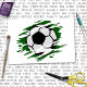 A cool graphic of a black and white soccer ball being shredded, ripped, and torn apart with a green background. *Colours are customisable by clicking on the Customise Further link.