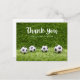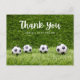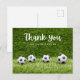 Soccer ball thank you with ball on green grass postcard
