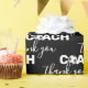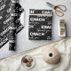 Soccer ball in bold white Coach text and thank you on black background.