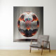 The design features a football decorated with an eye-catching and powerful motif. The dominant elements are the Croatian emblem and flames that surround the entire ball. The Croatian emblem, red and white chequerboard pattern, adds an unmistakable national identity. This symbolic representation refers to the Croatian football team and its strength. The flames surrounding the ball give the design a dynamic and energetic atmosphere. The choice of fire flames could refer to the nickname “the fiery ones” associated with the Croatian football team. The flames are a metaphor for the passion, determination and fighting spirit that the team shows on the field. The combination of the Croatian emblem and flames creates a visually appealing representation that highlights the strength and national pride of the Croatian football team.