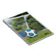 The blue and white soccer ball on grass is waiting to be kicked to score. The high resolution photograph creates an interesting soccer statement for the soccer lover. Personalise by adding or changing the name. Font can be changed by size, style, colour or location.