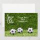 Invite your friends and family to save the date for your upcoming soccer game with this invitation that features a soccer ball and the words "save the date."