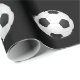Wrapping paper shown with a sports soccer ball print on a black background. Customise this item or buy as is.