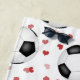 This cute personalised soccer beach towel features a simple pattern of soccer balls surrounded by tiny pink and red hearts - player name and jersey number are customisable - by katz_d_zynes