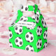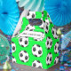 Images of soccer balls on a green background. Favour boxes for sports fans. Edit name to customise. Party decor idea.