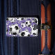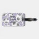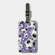 Custom soccer luggage tag with funky soccer ball graphics pattern on subtly striped purple background by katz_d_zynes