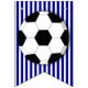 Alternating with the birthday boys age against a red and navy blue and white striped background is a single graphic of a black and white football and the birthday boys age