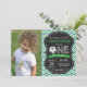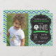 Soccer Birthday Invitation with custom photo. 1st Birthday Party. Boy Birthday Party Invite. Soccer Sport Themed Birthday Bash. Blue, Green and White Chevron Chalkboard Background. 1st First Birthday. Printable Digital. For further customisation, please click the "Customise it" button and use our design tool to modify this template.