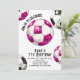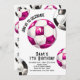 This magenta pink soccer birthday party invitation is part of a matching set of birthday party accessories. Your birthday kid is going to enjoy every moment of this special day. This design features the various shades of red, black and white, along with easy-to-read fonts, and plenty of space to add all of your unique information. For any special design needs, feel free to contact the designer, by sending an email to choosehappystudio@yahoo.com