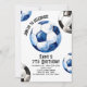 This soccer birthday party invitation is part of a matching set of birthday party accessories. Your birthday kid is going to enjoy every moment of this special day. This design features the various shades of blue, black white with a hint of gold, along with easy-to-read fonts, and plenty of space to add all of your unique information. For any special design needs, feel free to contact the designer, by sending an email to choosehappystudio@yahoo.com