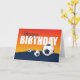 Soccer Birthday on Blue and Orange Athlete Card