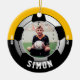 Celebrate your child's athletic triumphs in youth league, college or high school soccer with this Soccer Black Gold Team Colours Ornament. Personalise with your child's photo, name and the year. A great gift idea for Grandma and Grandpa.