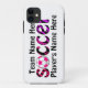 iPhone Case ~ Zebra print text in pink and purple zebra stripe with a soccer ball. Customisable team and player name, can also change the case colour. #soccer