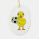 A yellow chick holding a soccer ball is a humourous sport design for back to school, birthdays and holidays.