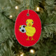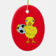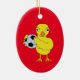 A yellow chick holding a soccer ball is a humorous sport design for back to school, birthdays and holidays.