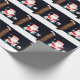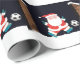 Soccer holiday gift wrap featuring creative Christmas scene of Santa upon the rooftop.