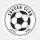 A clean, circular black-and-white emblem showcasing a traditional soccer ball. The badge features arched "SOCCER CLUB" typography at the top and "ESTD 1998" (editable) at the bottom, creating a professional and timeless team identity.