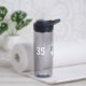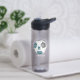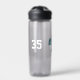 This team colours soccer themed water bottle is suitable for girls or boys and features the realistic image of a teal, grey and white soccer ball, upon which you can personalise the athlete's monogram or varsity letter - customise the school or club name encircling the top of the soccer ball, athlete name below, and jersey number on the sides of the bottle - by katz_d_zynes