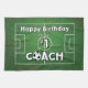 Wish a very Happy Birthday to your Soccer Coach with this wonderful gift, souvenir and giveaway in green, white and black colours. A ball included in the word coach with your message, all on a field full of green grass.