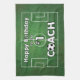 Soccer Coach Birthday with Grass Field and Ball Tea Towel
