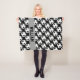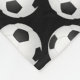 Soccer sports theme, black and white blanket- Soccer balls pattern on black background. Black colour may be changed to any colour to match decor. Personalised name in black, athletic retro style on a grey ribbon strip. Cute, custom baby boy shower gift, gift for soccer players, gift for teens, or gift for new baby boy.