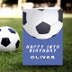 Soccer Football Ball Blue Boy Happy Birthday Card. Personalise with your name and make a cool birthday greeting card for a real soccer fan or player.