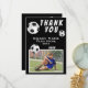 Black and White Soccer Football Ball Sports Thank you Coach. Soccer thank you coach card with photo, thank you text, coach name, team name, year, your name and soccer balls. Photo thank you card - add your photo to the template. Personalise the card with names and your text.