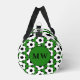 Football soccer balls patterned sports duffel bag, with a monogram area at one end to add your own initials or text