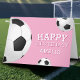 Soccer Football Balls Sports Happy Birthday Card with Name. Soccer balls with a Happy birthday wish on a pink background. Personalise with your name and make a special personal card for a boy or a girl who loves soccer game.