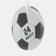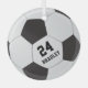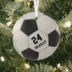 Personalized soccer christmas ornament featuring a football, the childs name and shirt number.