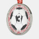 Soccer (Football) Player Jersey Number Christmas Metal Ornament: A sweet soccer-themed Christmas ornament for serious soccer players and fans, with a beautiful knit-style Christmas pattern behind a black and white soccer ball graphic, and a custom text box where you can type in your own soccer player's jersey number, initials, or any other text. These make a fun and memorable Christmas gift and stocking stuffer for soccer lovers, and can be proudly displayed on the Christmas tree to enjoy for many holiday seasons to come!
