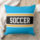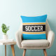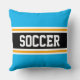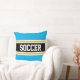 SOCCER Fun Bright Sky Blue Black Athletic Stripes Cushion