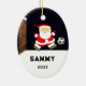 Creative soccer Christmas ornament holiday gift featuring funny Santa soccer player kicking a ball. Edit text to add year and the name of your favourite player, coach of football team sports fan.