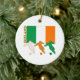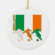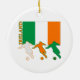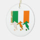 Three Irish soccer players in silhouette play in front of the Irish flag.